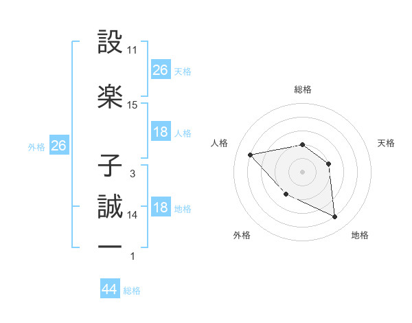設楽 子誠一さんを姓名の画数から五運を鑑定
