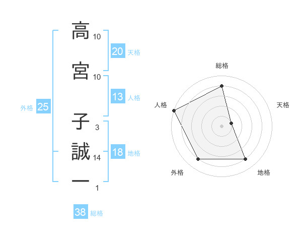 高宮 子誠一さんを姓名の画数から五運を鑑定
