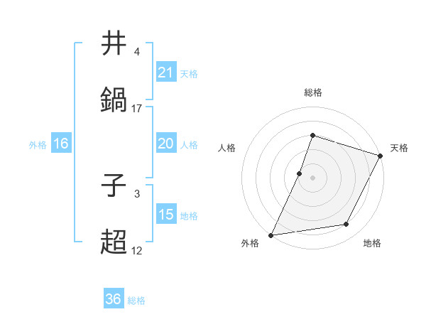井鍋 子超さんを姓名の画数から五運を鑑定