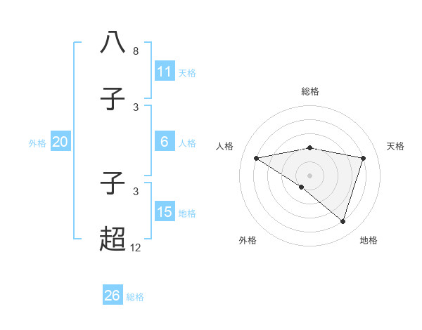 八子 子超さんの総格は26画の2点!