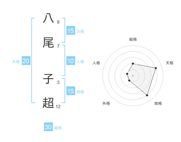 八尾 子超さんの天格は15画の4点!