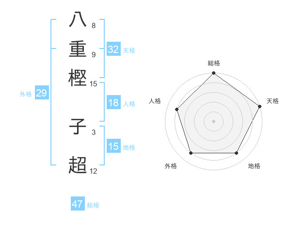 八重樫 子超さんの総格は47画の5点!
