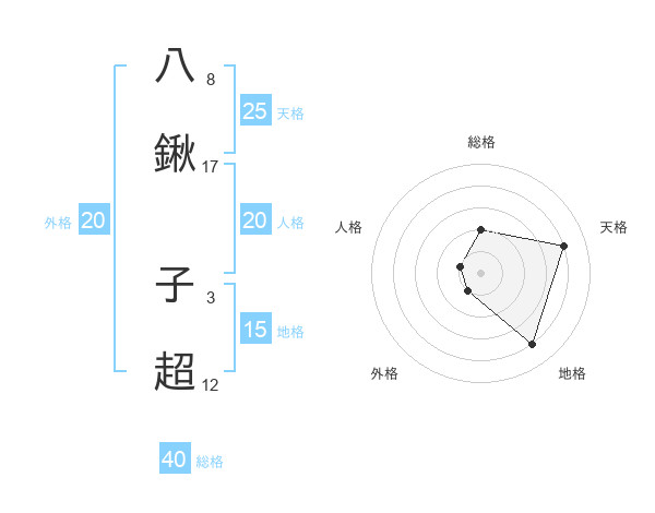 八鍬 子超さんの天格は25画の4点!