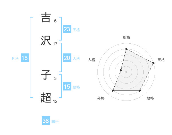 吉沢 子超さんを姓名の画数から五運を鑑定