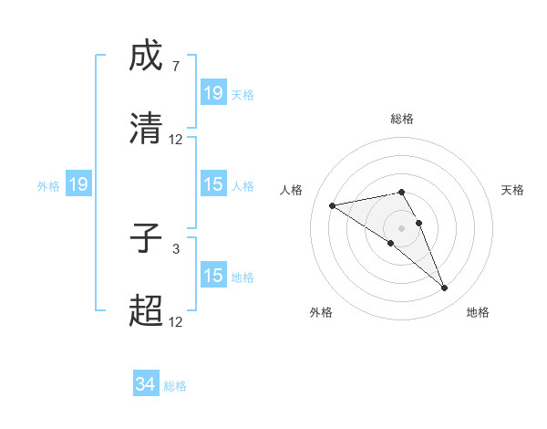 成清 子超さんの外格は19画の1点!