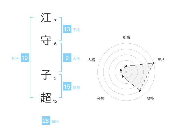 江守 子超さんの天格は13画の5点!