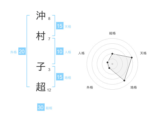 沖村 子超さんの地格は15画の4点!