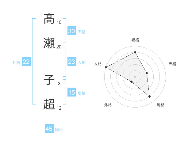 髙瀨 子超さんを姓名の画数から五運を鑑定