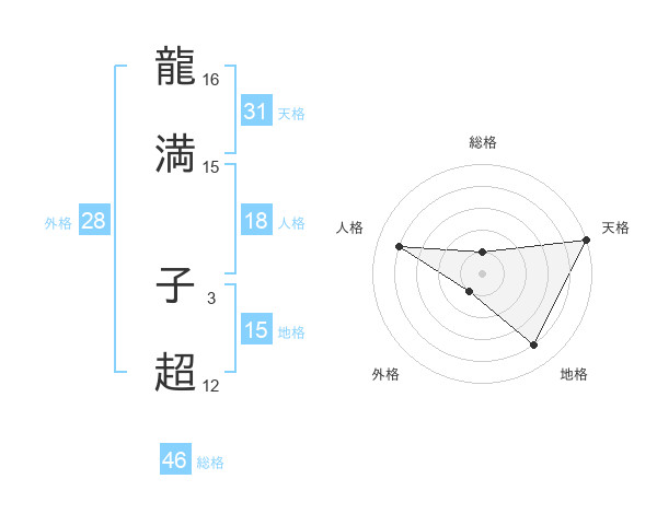 龍満 子超さんの天格は31画の5点!