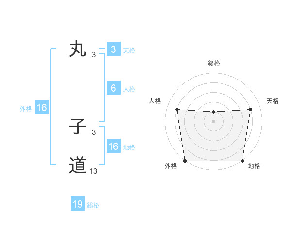 丸 子道さんの外格は16画の5点!