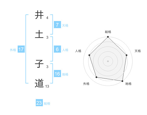 井土 子道さんの総格は23画の5点!
