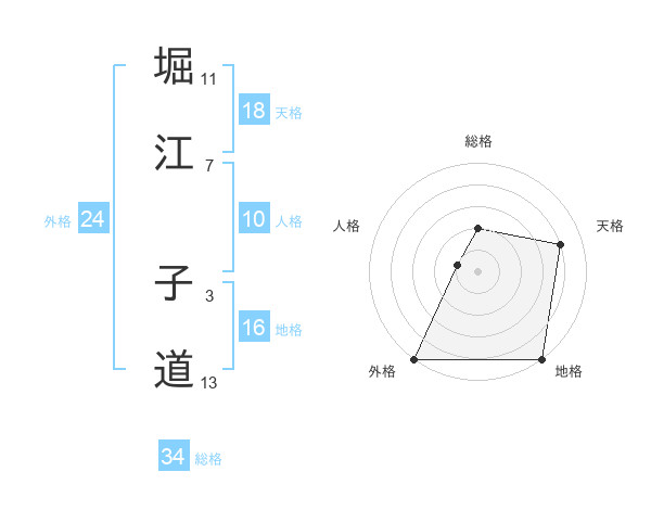 堀江 子道さんの総格は34画の2点!