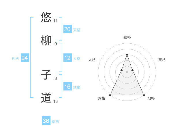 悠柳 子道さんを姓名の画数から五運を鑑定