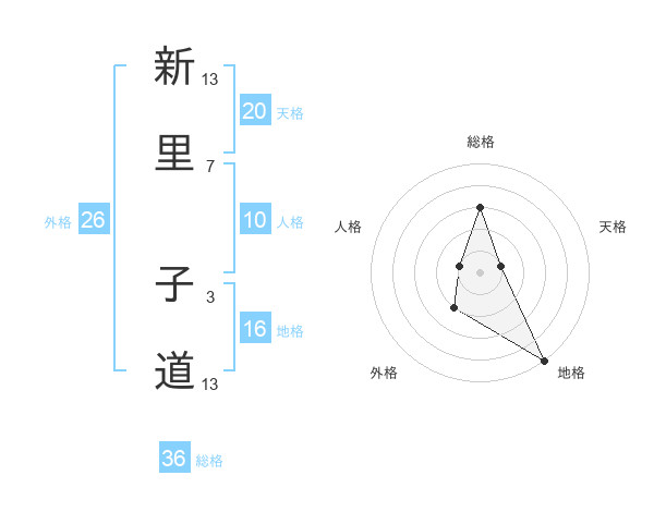 新里 子道さんの地格は16画の5点!