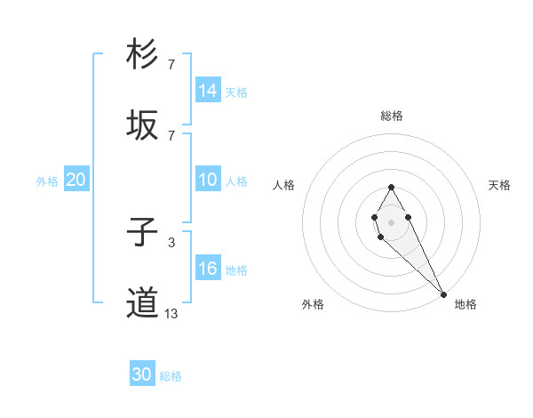 杉坂 子道さんの総格は30画の2点!