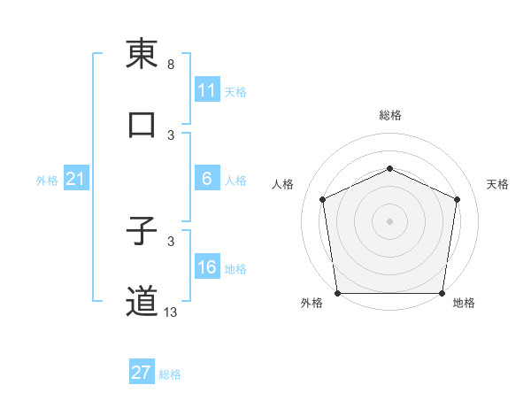 東口 子道さんの外格は21画の5点!