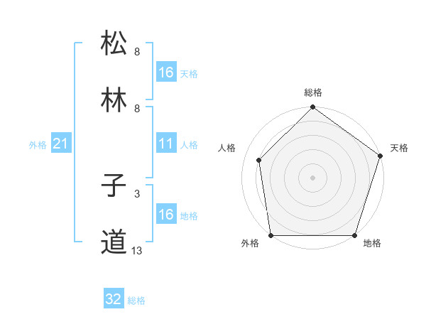 松林 子道さんの地格は16画の5点!