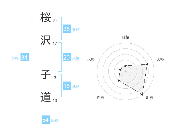桜沢 子道さんを姓名の画数から五運を鑑定