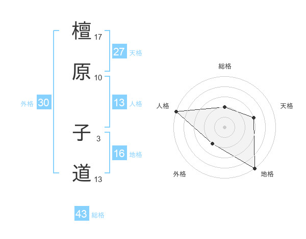 檀原 子道さんの総格は43画の2点!