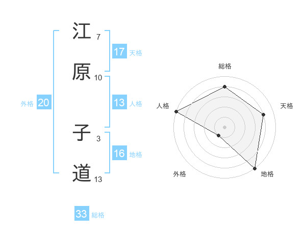 江原 子道さんの天格は17画の4点!