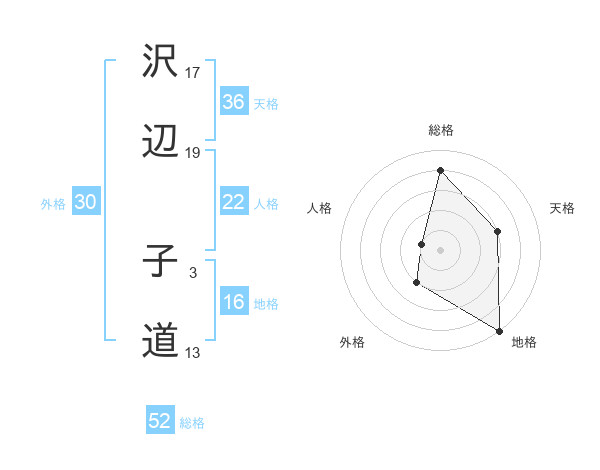 沢辺 子道さんの総格は52画の4点!