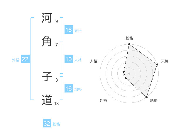 河角 子道さんの総格は32画の5点!