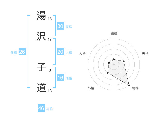 湯沢 子道さんの総格は46画の1点!