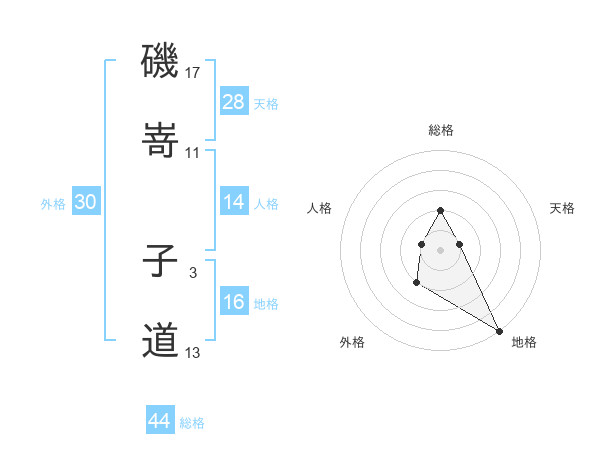 磯嵜 子道さんの総格は44画の2点!