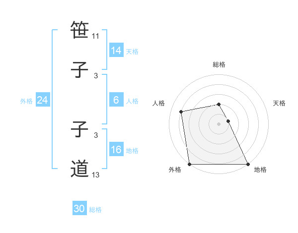 笹子 子道さんの総格は30画の2点!