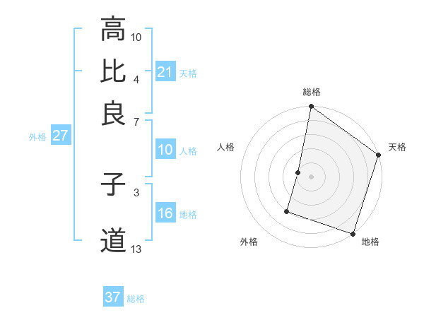 高比良 子道さんの総格は37画の5点!