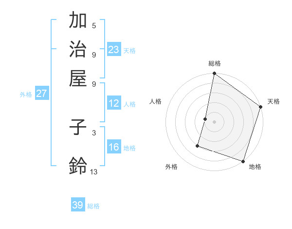 加治屋 子鈴さんを姓名の画数から五運を鑑定