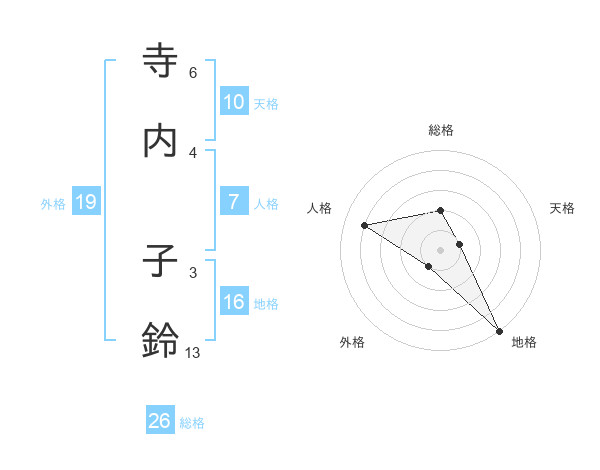 寺内 子鈴さんの地格は16画の5点!