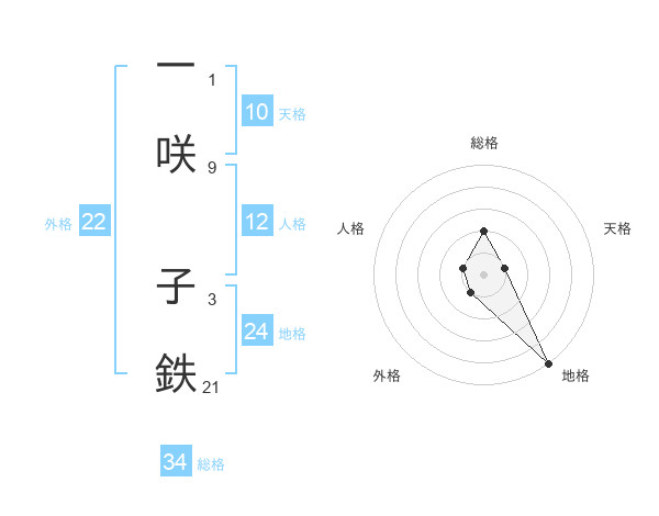 一咲 子鉄さんの総格は34画の2点!