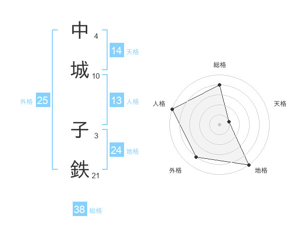 中城 子鉄さんを姓名の画数から五運を鑑定