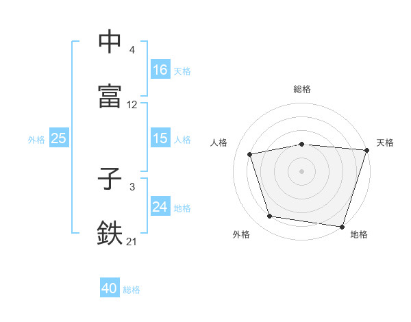 中富 子鉄さんの地格は24画の5点!