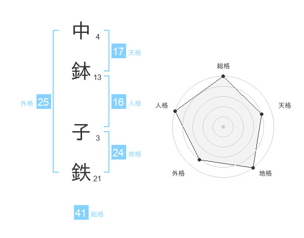 中鉢 子鉄さんの天格は17画の4点!