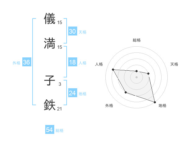 儀満 子鉄さんの総格は54画の1点!