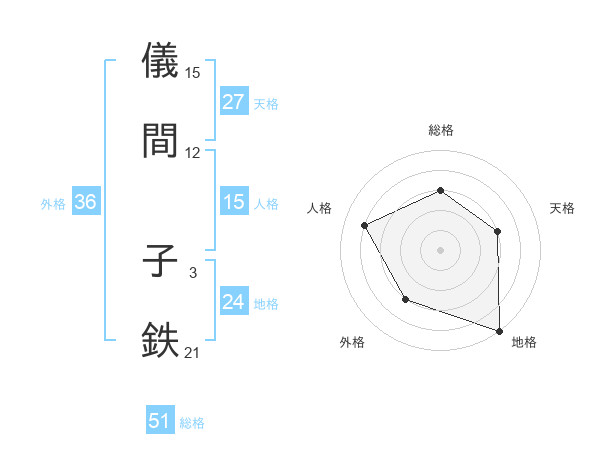 儀間 子鉄さんの総格は51画の3点!