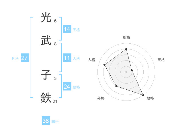 光武 子鉄さんを姓名の画数から五運を鑑定