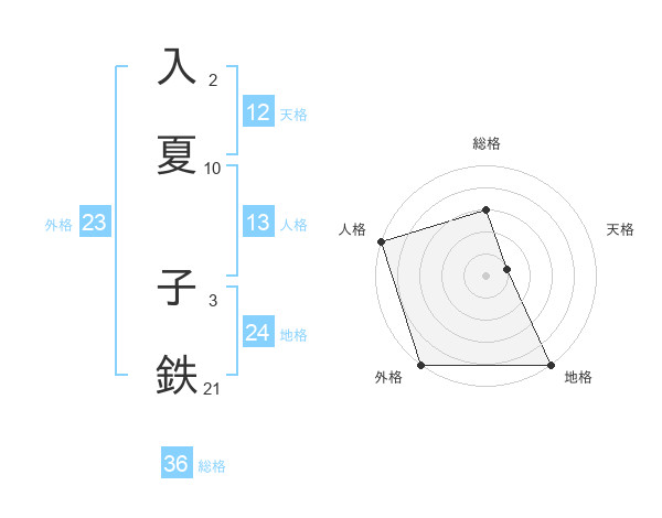 入夏 子鉄さんを姓名の画数から五運を鑑定