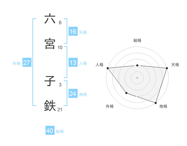 六宮 子鉄さんを姓名の画数から五運を鑑定