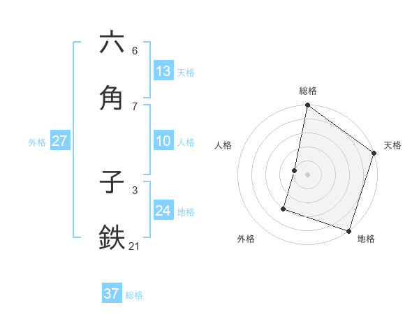 六角 子鉄さんの総格は37画の5点!