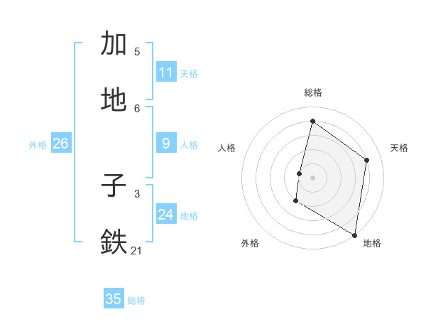 加地 子鉄さんの地格は24画の5点!