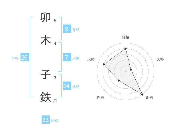 卯木 子鉄さんの総格は33画の4点!