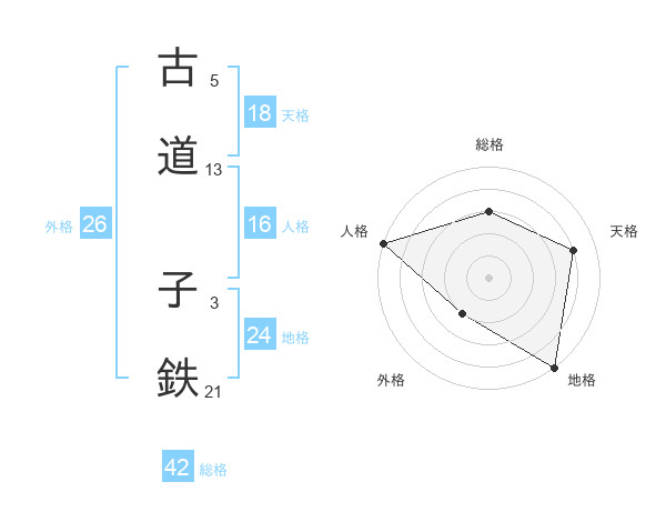 古道 子鉄さんを姓名の画数から五運を鑑定