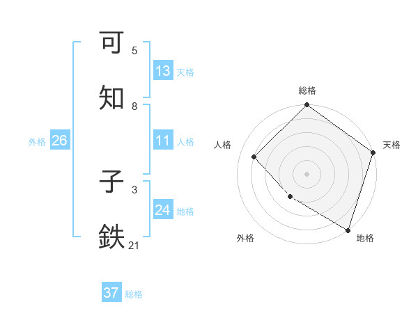 可知 子鉄さんを姓名の画数から五運を鑑定