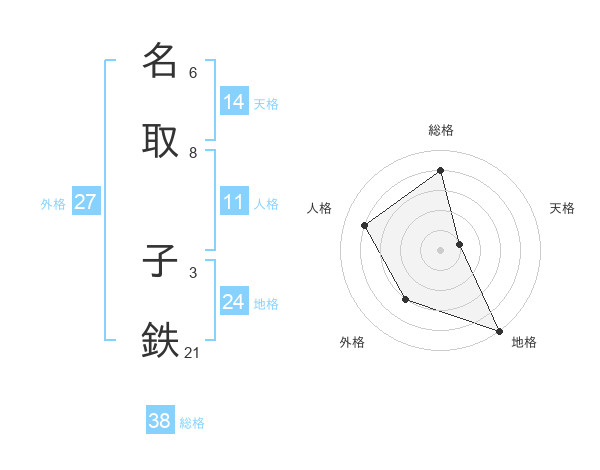 名取 子鉄さんを姓名の画数から五運を鑑定