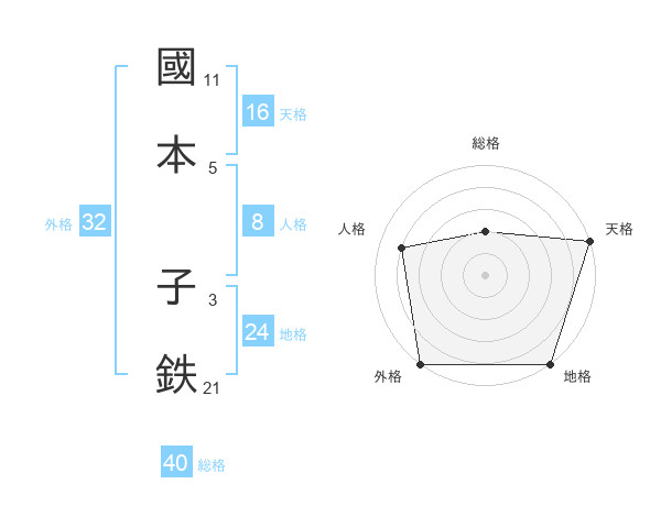 國本 子鉄さんを姓名の画数から五運を鑑定
