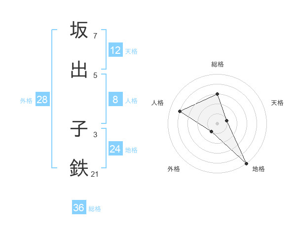 坂出 子鉄さんを姓名の画数から五運を鑑定