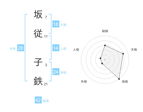 坂従 子鉄さんの地格は24画の5点!